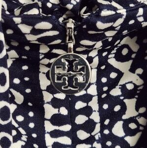 Tory burch dark navy and white patterned jumpsuit perfect for any occasion. Features a halter neck design for a chic look.