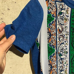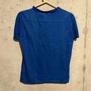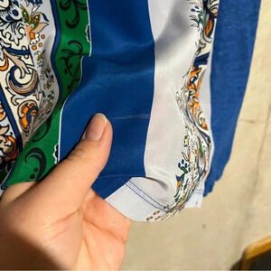 Tory Burch Silk Front & Linen Short Sleeve T-Shirt Blue Floral Women’s Size XXS