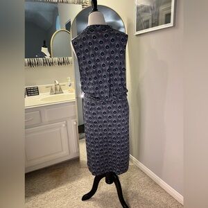 The most comfortable dress in your closet that also looks great for the office. 100% silk jersey from Tory Burch is a timeless peacock print. Pull-on styling with draping cowl neck, seamed waistline for tailored fit. Size Large. In great used condition.
