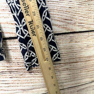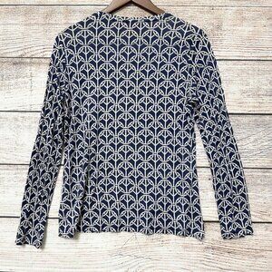 Tory Burch Silk Long Sleeve Top Women’s M Navy White Geometric Print Lightweight