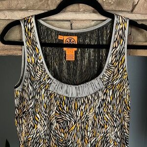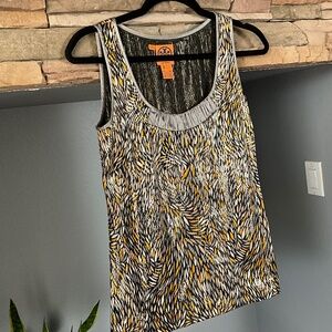 Tory Burch Silk Blend Going Out Party Sleeveless Top, Festive Metallic Pattern, Popover Side Zipper Closure, Event, Evening, Cocktail, Holiday, Thanksgiving Dinner,