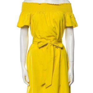 Tory Burch Silk Midi Dress Yellow Ruffle Short Sleeve Off-The-Shoulder M ($448)