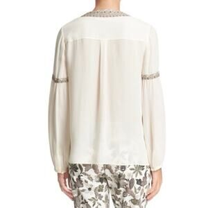 Tory Burch Silk Peasant Blouse Top Ivory Chiffon Size S Batik Trim Boho Designer