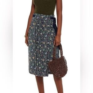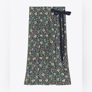 Tory Burch Silk Pleated Wrap Midi Skirt in Navy Soleil Print Size 4