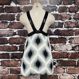 Tory Burch Silk Tank Top Geometric Print Grey Black Size 8