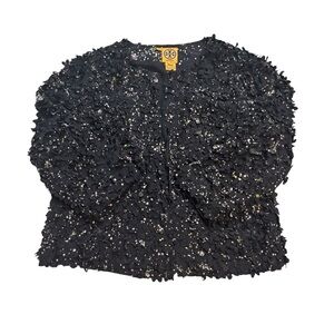 Tory Burch blazer, silk jacket, textured petal blazer, black cropped jacket, rare Tory Burch, designer blazer size 6, evening jacket, luxury womenswear
