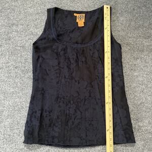 Tory Burch Silk Top Women Size 4 Floral Black Navy Tank Semi Sheer Chiffon