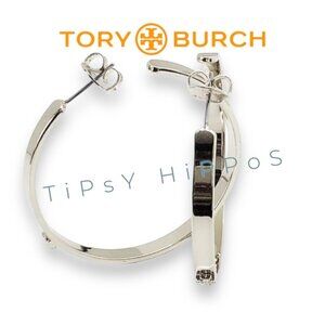 Tory Burch Silver Hoop Earrings With Logo Studs - Shine Bright Like A Tory