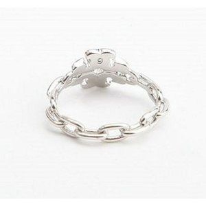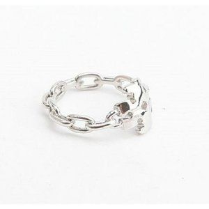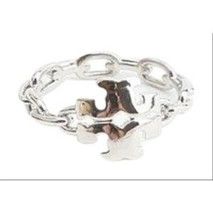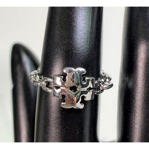 A Tory Burch ring features a silver-tone chain band and the label's signature emblem. Wear it with other delicate rings for a stylish stacked look.