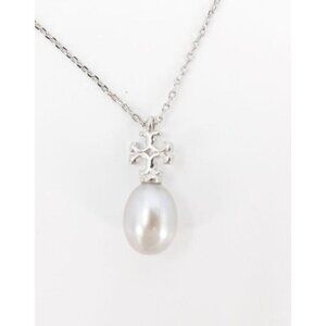 A sophisticated accessory that combines timeless elegance with modern charm. The freshwater pearl enhances the polished sterling silver cross pendant beautifully.