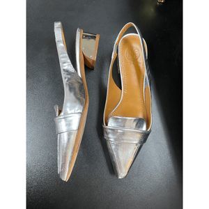 Tory Burch Silver Leather Sadie Slingback Flats Size 6.5, MSRP $295