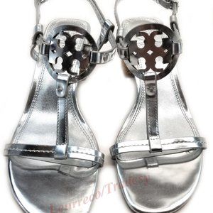 TORY BURCH Miller Metallic Espadrille Sandal in Silver Size 7M