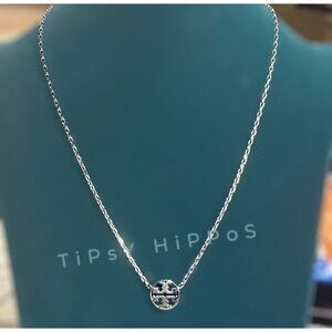 Tory Burch Silver Miller Logo Necklace