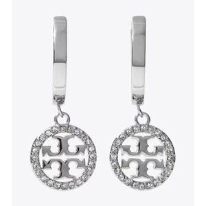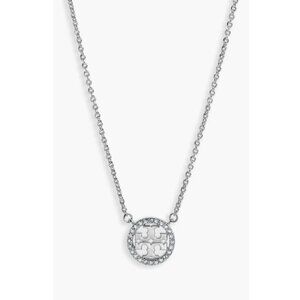 Tory's iconic logo collection, reimagined as polished jewelry. The Miller Pavé Logo Delicate Necklace & and dangle/drop earring set is defined by understated sparkle — strung with a silver-toned Double T charm that’s traced in tiny stones.