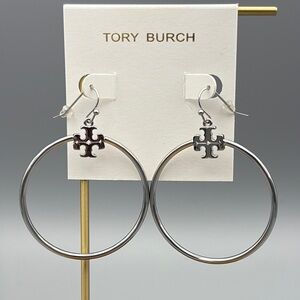 Tory Burch Silver Tone Stacked T Logo circle drop earrings
