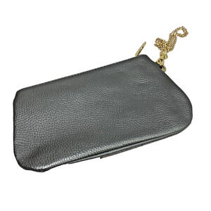 Tory Burch Silvery Gray Metallic Leather Wristlet Wallet Pouch Detachable Chain