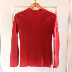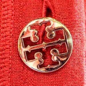 Pure Merino wool ribbed Simone boyfriend cardigan sweater from Tory Burch in rich burnt orange.