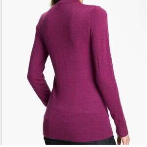 Tory Burch Simone Merino Wool Cardigan Women's Medium Magenta Gold Logo Button Luxury Preppy Winter Career office party Old money designer