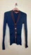 Tory Burch Simone Navy Brown Ribbed 100% Cotton V Neck Button Knit Cardigan S