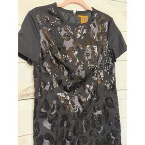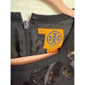 Tory Burch Size 10 Dress Black Short Sleeves Sequin Designs Chic Classy