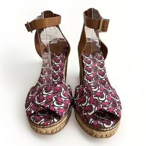 Tory Burch Size 10 Women's Pink LillyPad Straps Espadrille Wedge Sandals