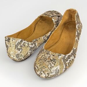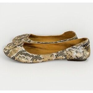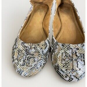 Tory Burch Size 7.5 Reva Ballet Flat Ballerina Leather Snakeskin Metallic