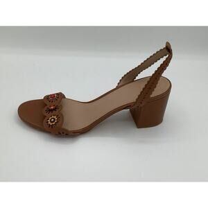 Tory Burch Size 9 Light Brown Kitten Heel Slides Floral Charms Boehmian