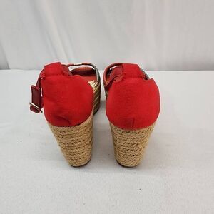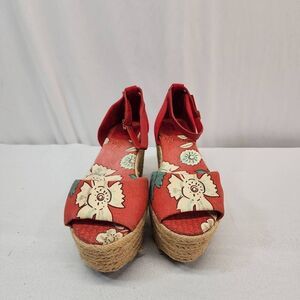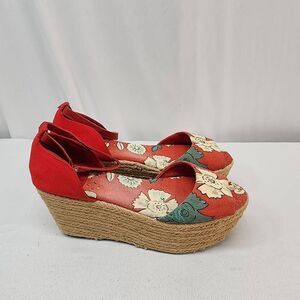Tory Burch Size 9 Red Floral Raffia Wedge Sherri Espadrilles Sandals Q