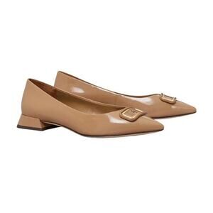 Tory Burch Size 9.5 GEORGIA Pointed Toe Flats Almond Flour Beige Patent Leather