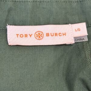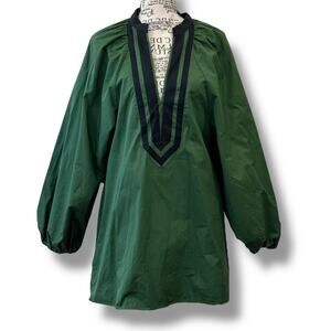 Tory Burch Size L Puffed-sleeve Tunic Blouse Banyan Green 100% Cotton