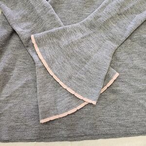 Tory Burch Size S P Gray Sweater with Button Detail 100% Merino Wool bell cuff with pink detail