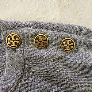 Tory Burch Size S P Gray Sweater with Button Detail 100% Merino Wool
