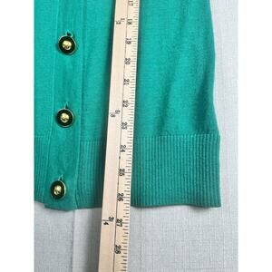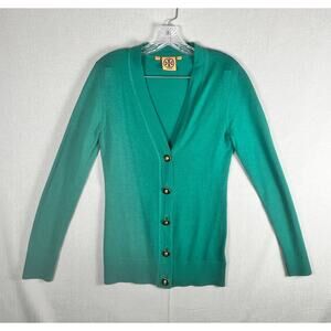 Tory Burch Size XS Green Wool Cardigan Sweater V Neck Button Down Gold Logo READ