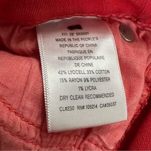 Tory Burch Skinny Pants Orange With Subtle Design SZ 4 Designer 1% Lycra Casual