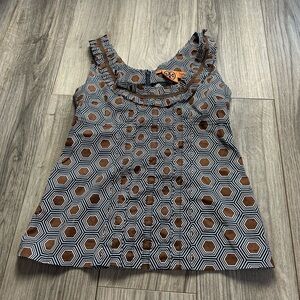 Tory Burch Sleeveless Geometric Print Silk Blouse