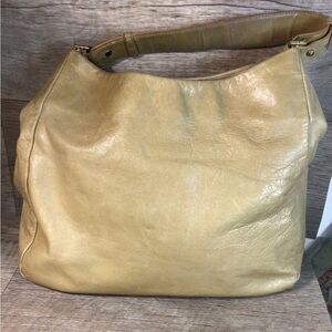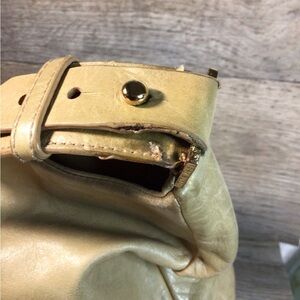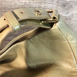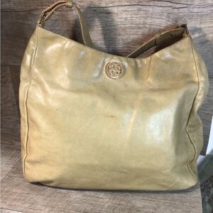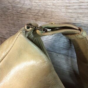 Tory Burch Slouch Shoulder Bag Tan Footed Magnetic Closure Clean Interior