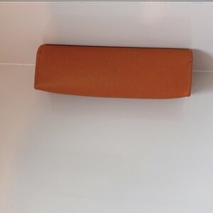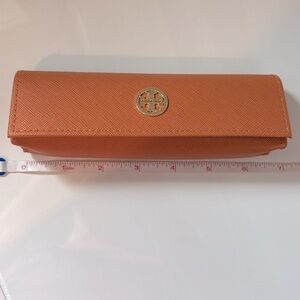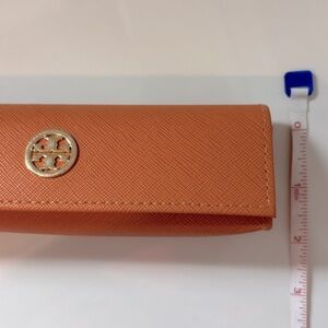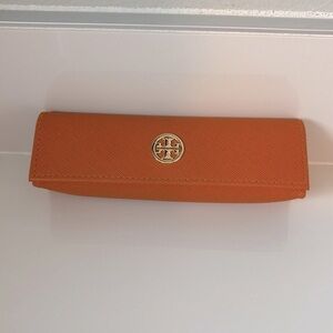 Tory Burch Small Leather Eyeglasses Case Orange with Gold-Tone Logo Hardware
