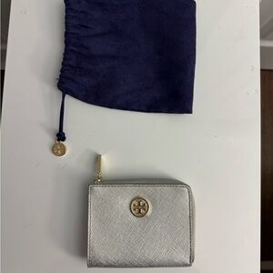 Tory Burch Small Silver Zip Wallet