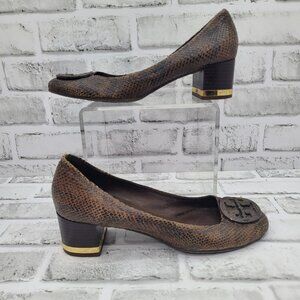 Tory Burch Snakeskin Pattern Brown Heels