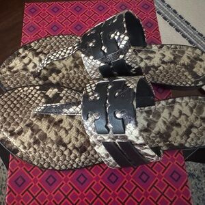 Tory Burch Snakeskin Printed Leather Sandals. Size 9.5