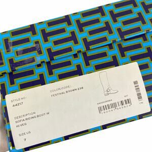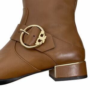 Tory Burch Sofia Tall Riding Boots Leather Logo Festive Brown Size 7