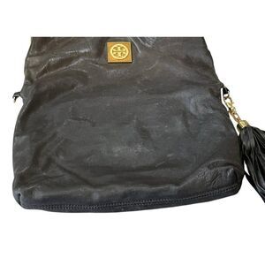 Tory Burch Soft Black Leather Foldover Convertible Crossbody Shoulder Tote Bag