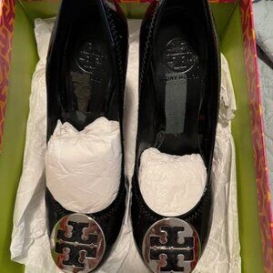 Classic Tory Burch! Black Patent Wedge shoe size 9. Worn but not at all with a used look on the outside.
