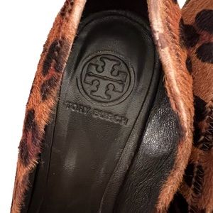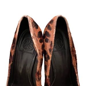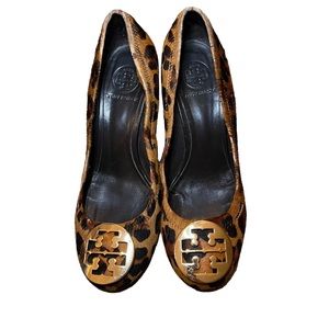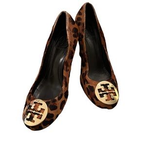 Tory Burch Sophie Wood Wedge Calf Hair Animal Print Heels 9