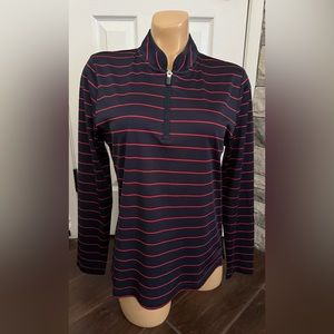 Tory Burch Sport Half Zip Performance Pullover 1/4 Zip Navy Red Stripes Medium