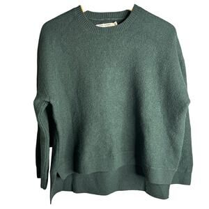 Tory Burch Sport Merino Wool Crew Sweater in Green. Size XL / Extra Large. Features crew neck, long sleeves, ribbed trims, side slits, high-low hem, and pullover style. Style 38851. 100% Merino Wool. Minor wear on neckline.