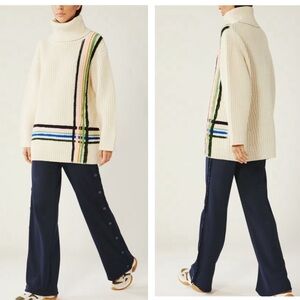 Tory Burch Sport Merino Wool Hand Embroidered Striped Turtleneck Sweater ✨ XS