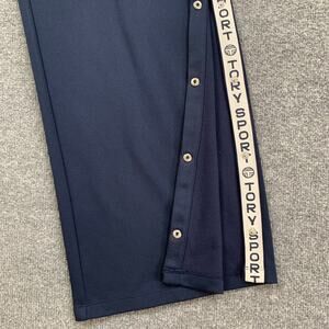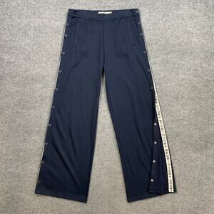 Tory Burch Sport Pants Women XL Extra Large Navy Snap Button Wide Leg Tear Away