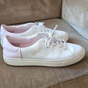 Tory Burch Sport Sneakers Pink And White Leather Upper Size 10, in good condition, minor wear on right toe rubber light marks- see picture.