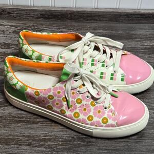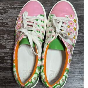 Tory Burch Sport Women's Multicolor Patent Leather Floral Golf Sneaker Size 8.5M. Pre owned-gently used.